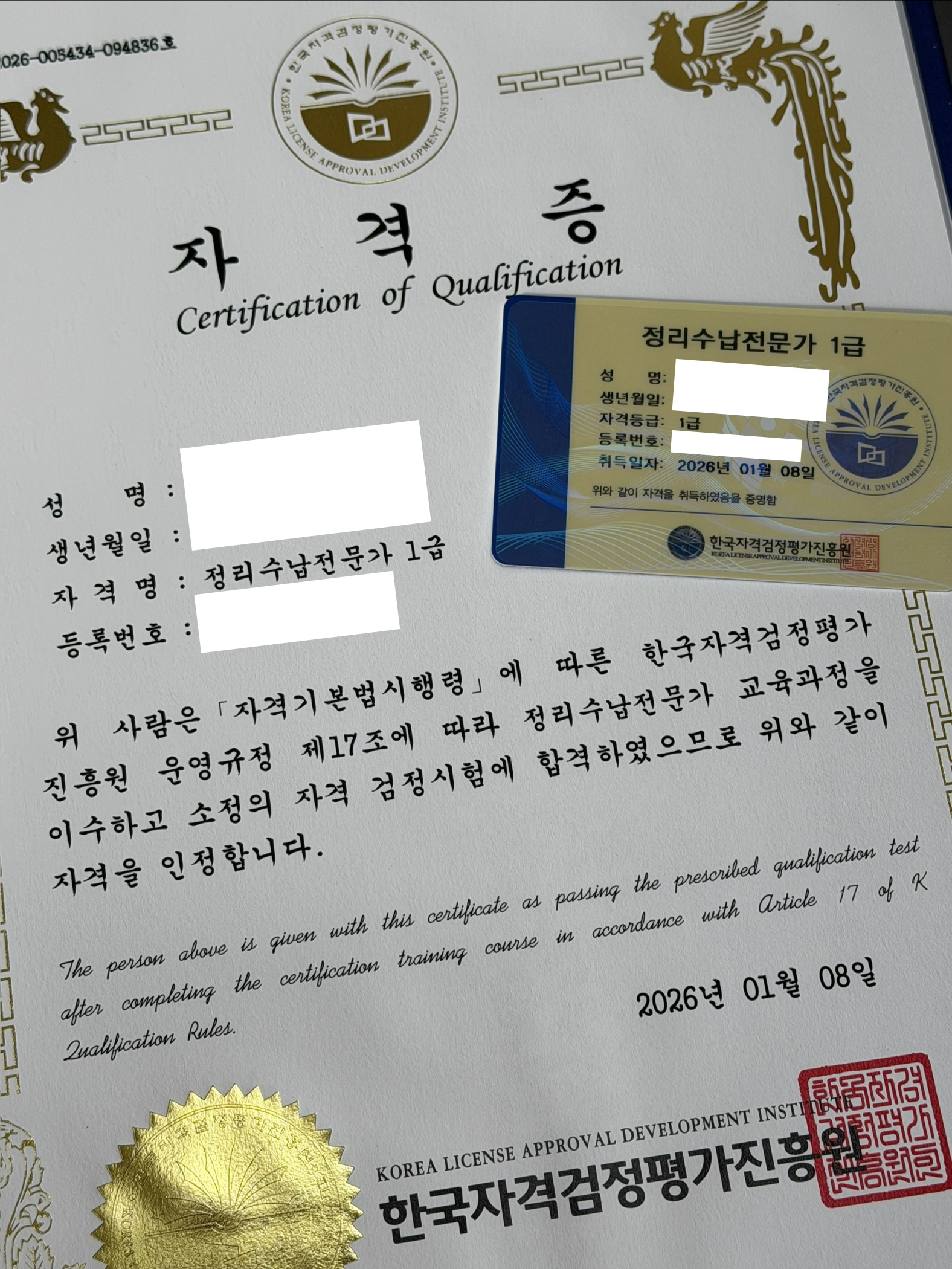 정리 및 수납에 있어서 원리와 원칙를 명확하게 알고 있지 못해 평소에 많은 어려움이 있었는 데 정리수납 전문가 강의를 하면서 현재 저한테 어떻게 적용 하면 되는지 알 수 있게 되었고 부모님 댁도 도와 드릴 수 있게 됐습니다 수강 기간이 넉넉해서 근무 병행하면서 수강 하고 자격증 취득 까지 어렵지 않게 성공 할 수 있었습니다~