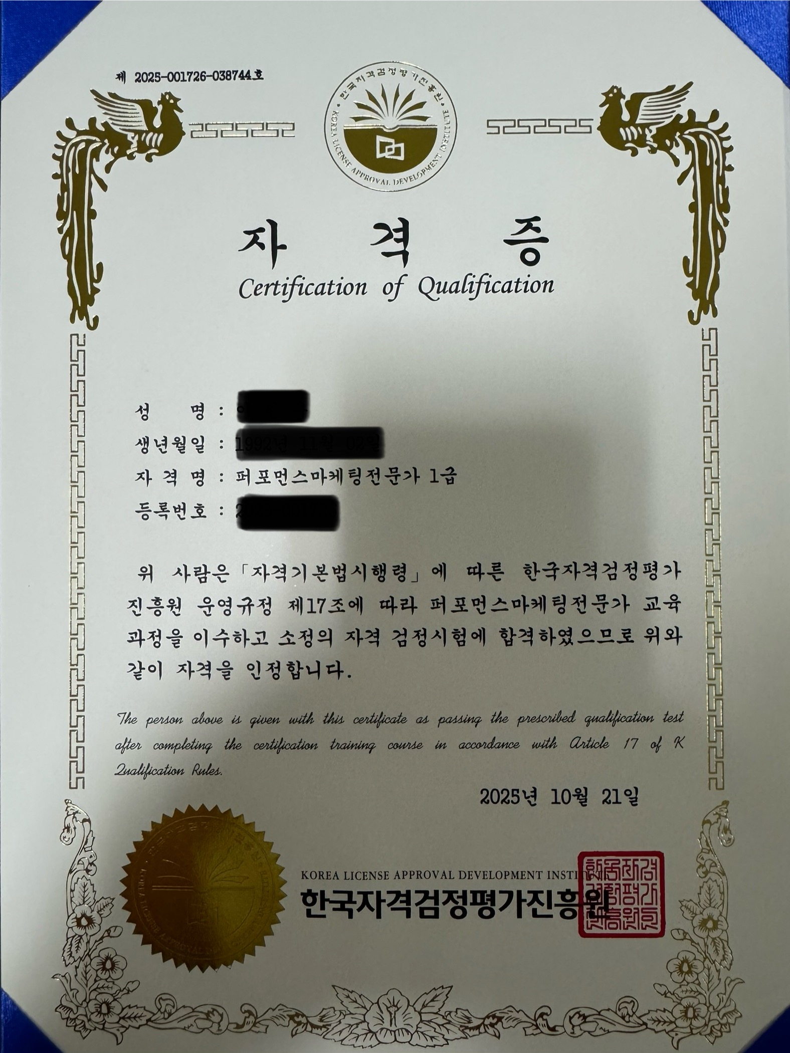 업무중 온라인 마케팅 수요가 점점 필요하고 중요해지다보니, 이 자격증이 엄청난 자신감을 충족시켜줍니다. 실무에 적용해서 설명해주신 수업내용도 물론 너무 좋았습니다.