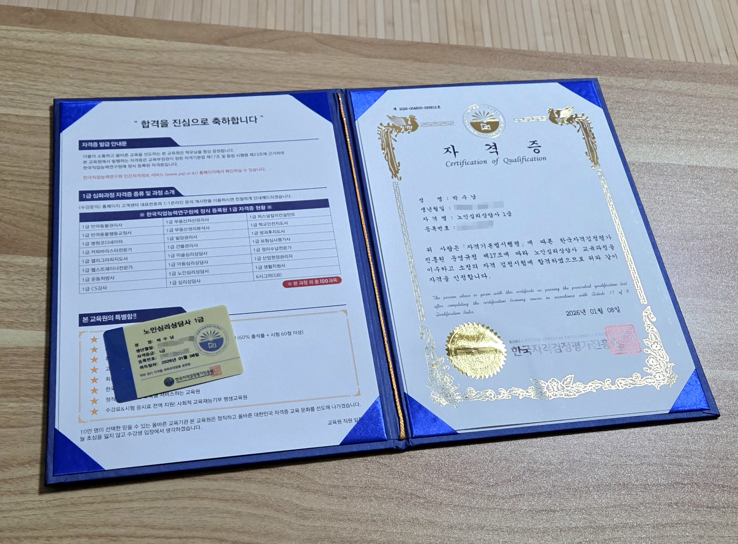 지인의 추천으로 전부터 알았지만 최근에서야 자격증 취득과 어르신들의 일상에 더 가까이 하고픈 마음이 들었습니다. 후에 보람있는 생활을 꿈구어 봅니다. 교수님늬 자세한 설명이 귀에 잘 들어왔습니다. 감사합니다.^^