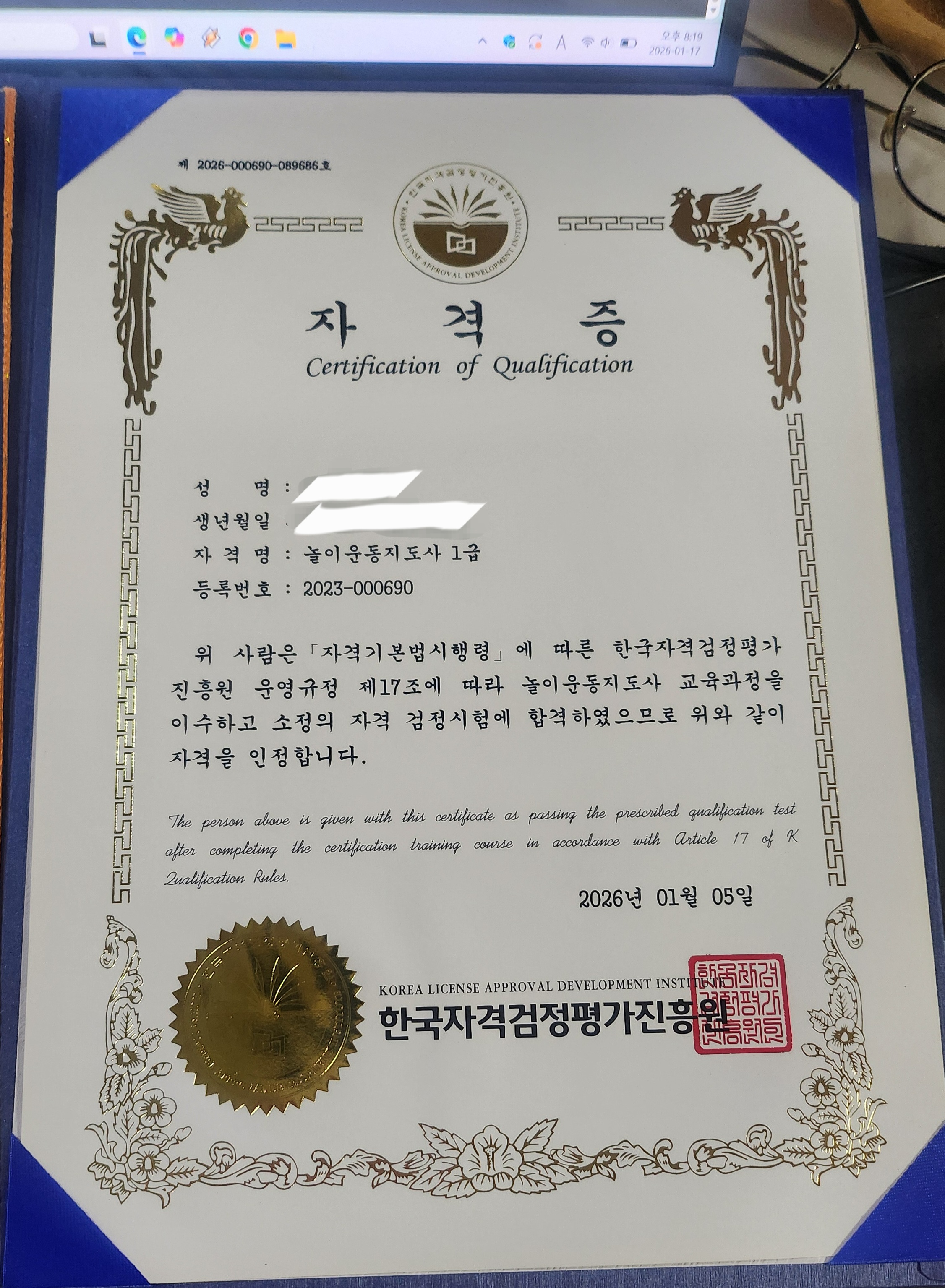 아들의 추천으로 직장그만두면 할수있는 일이 뭐가 있을까 ㆍ아이들을 키워본 경험이 있어 그런지 쉽게 자격증을 취득하게 되엇어요 ㆍ 또 다른 자격증 도전중입니다