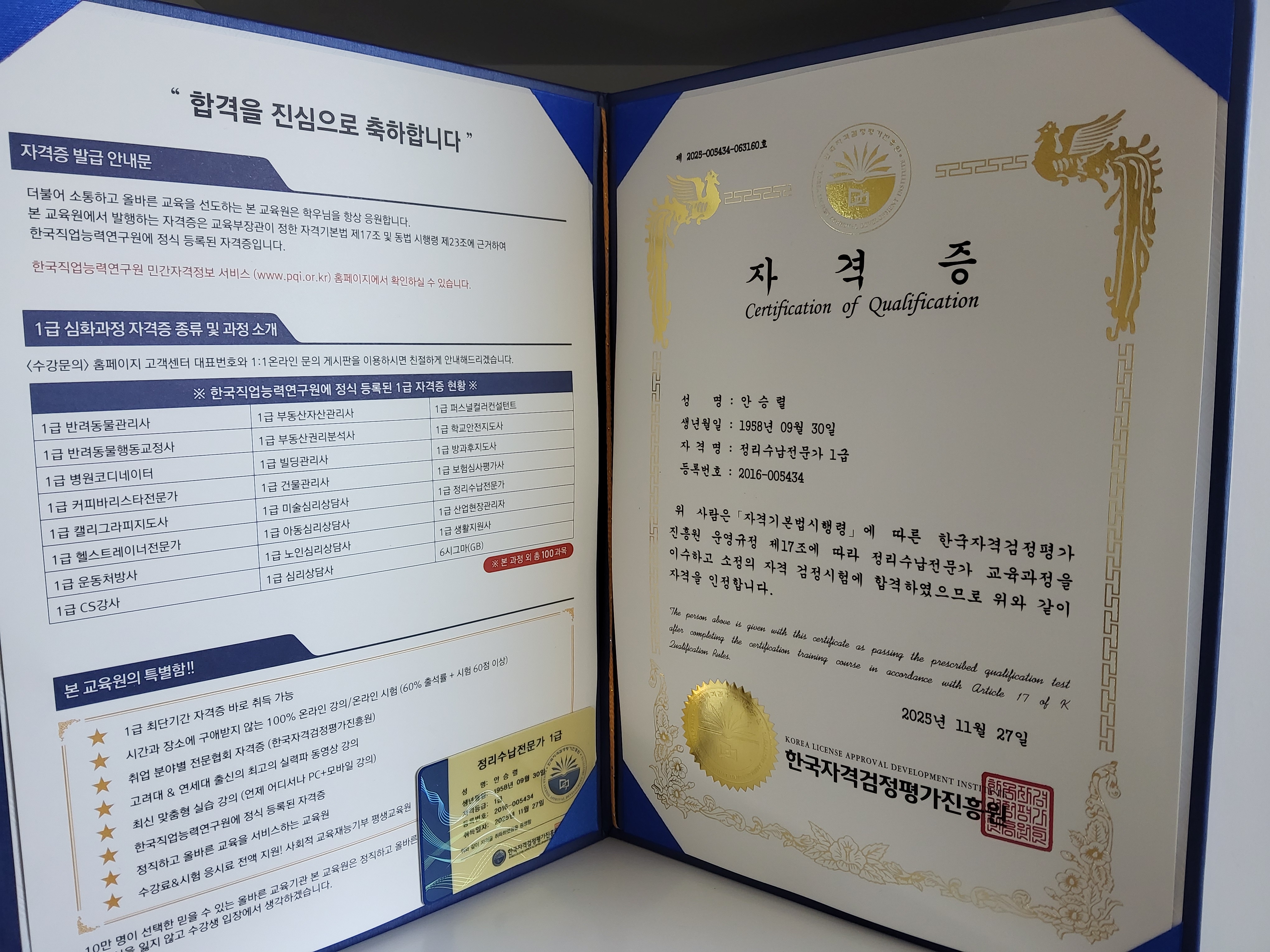 혹시 필요할 지 몰라서 자격증 따봤는데 보람차고 너무 좋네요, 감사합니다.