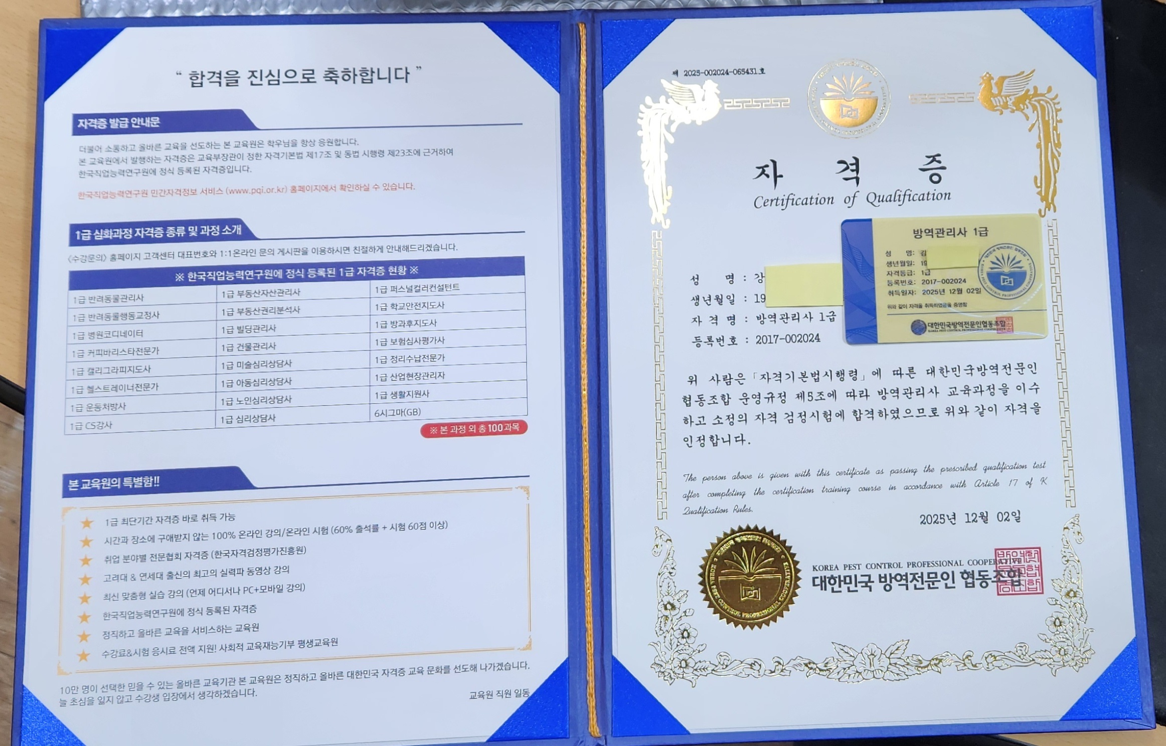 이런 자격증이 있는 줄 몰랐는데 너무 쉽게 교육해 주셔서 편안하게 교육 듣고 쉽게 자격증 취득했습니다.
