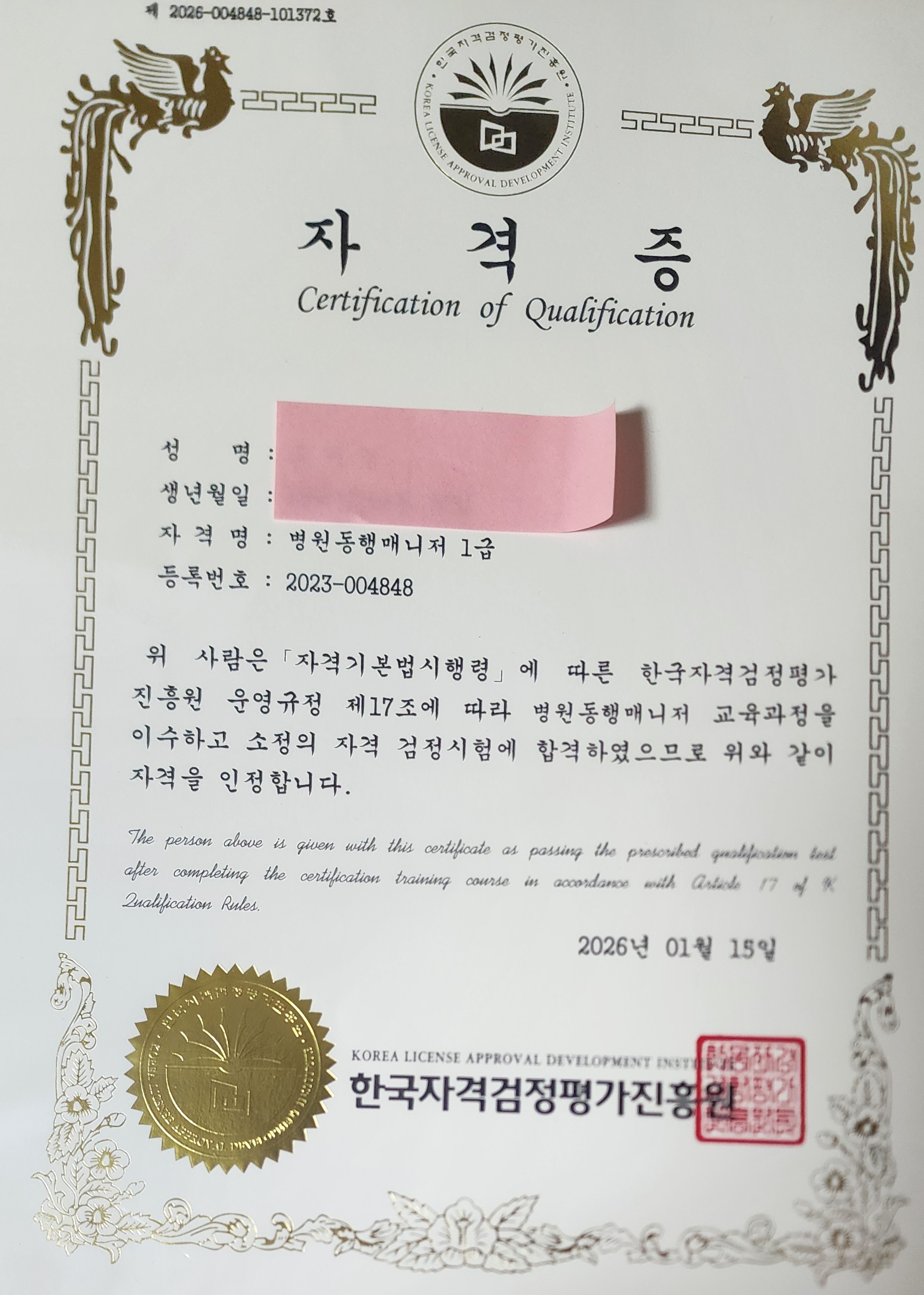 사회 복지를 공부하고 있는 와중에 병원 동행 매니저 자격증 을 알게 되었고 도움이 될 자격증 같아서 취득하게 되었습니다.