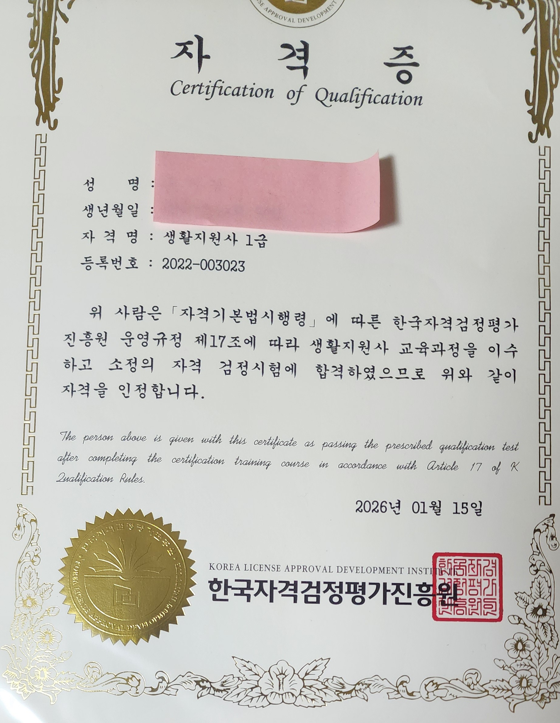 간병사 자격증 취득했어요.^^
