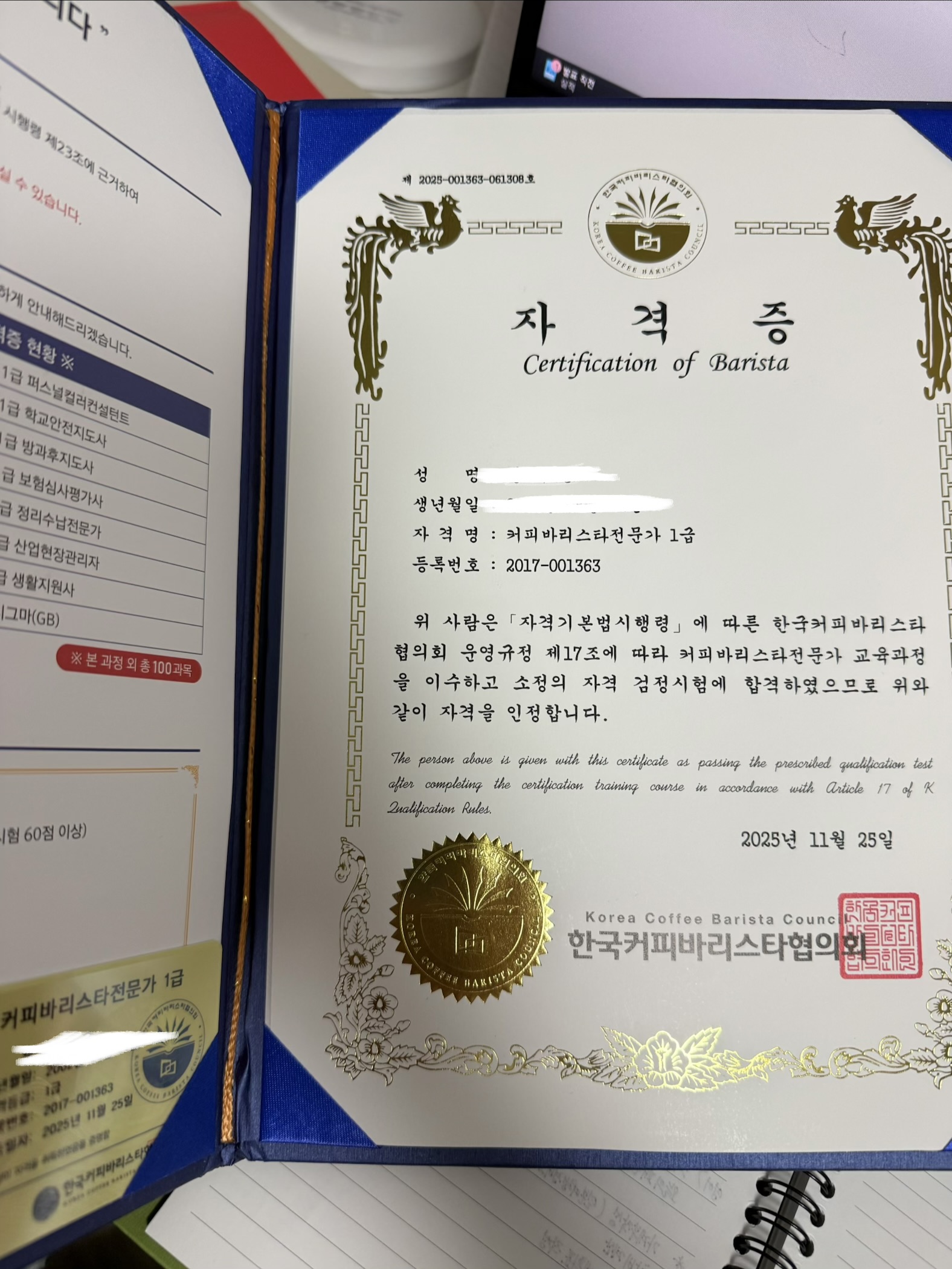 커피바리스타전문가 1급