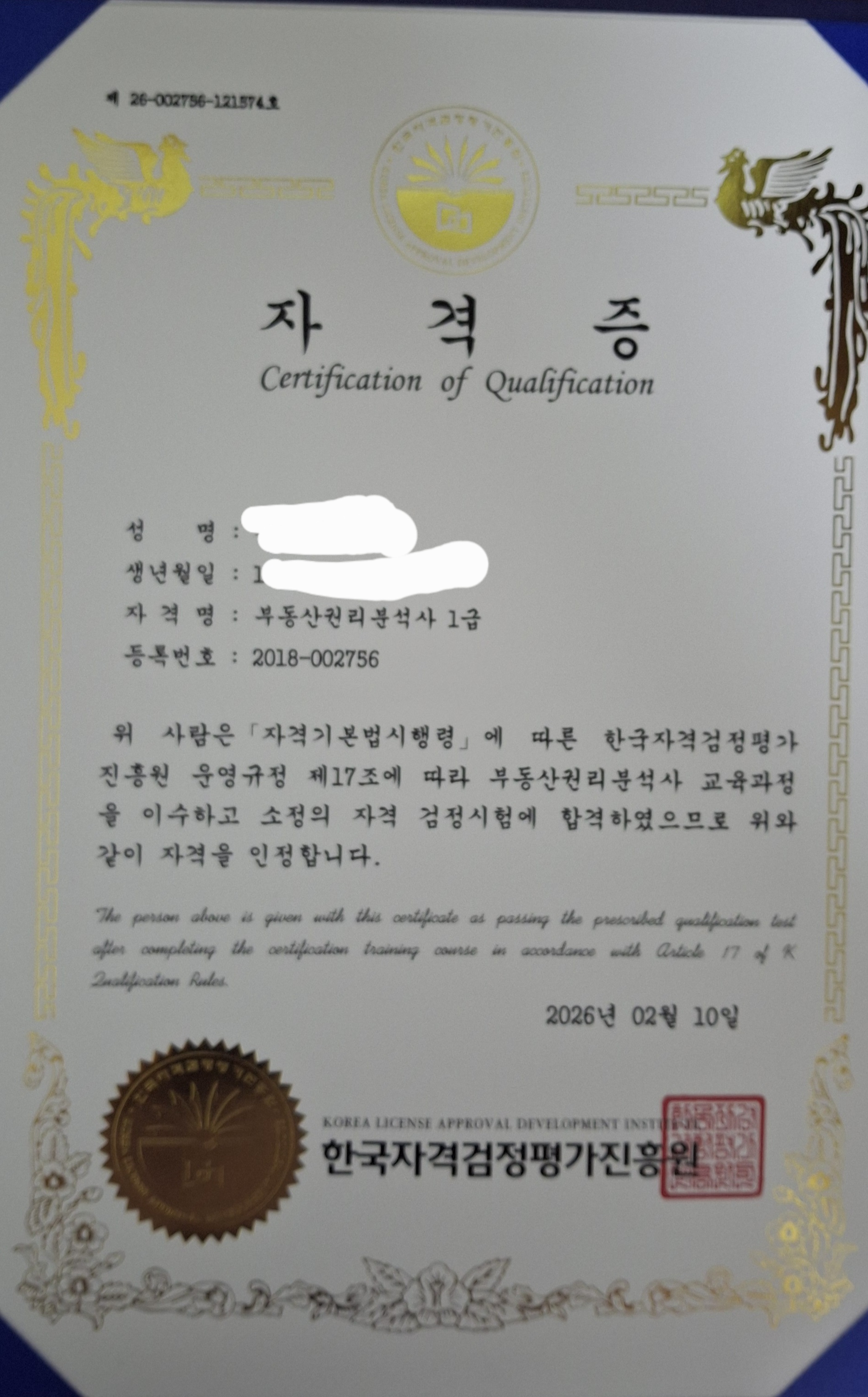 자격증 취득 : 부동산권리분석사