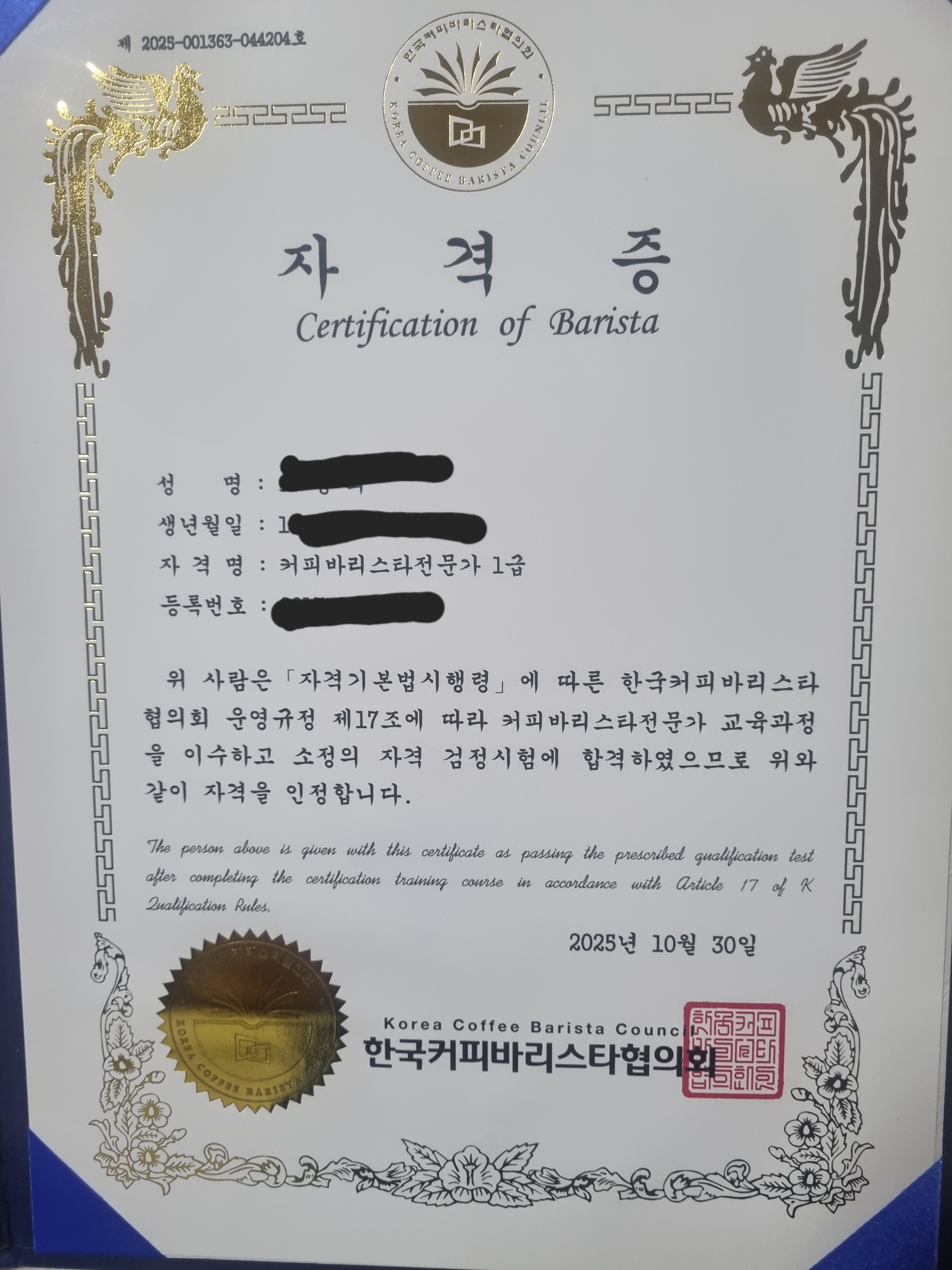 바리스타 자격증을 진즉부터 도전하고 싶었는데 이제서야 하게 되었어요. 직접 가서 하는것만 생각했지 인강으로 있는것은 몰랐는데 친구가 인강으로 듣고 시험만 보면 된다고 그래서 도전하게 되었는데 이것도 첨에는 망설이게 되더라구요. 시험은 어렵지는 않을까 하고...그런데 도전하기를 잘한것 같아요. 교수님도 설명을 잘해 주시고 시험에 나올수 있는 부분을 체크해 주시기도 하고 기출문제도 있다보니 어렵지 않게 시험에 합격할 수 있었습니다.현장에서 바로 할수는 없지만 아예 모르고 가는것 보다는 충분히 이해하는 폭이나 빨리 배워지기는 할 것 같아요. 저처럼 망설이시는분들이 계시다면 한번 도전해 보세요 새로운것을 배우는것만 해도 참 좋은 경험이지 않을까 싶습니다.감사합니다^^