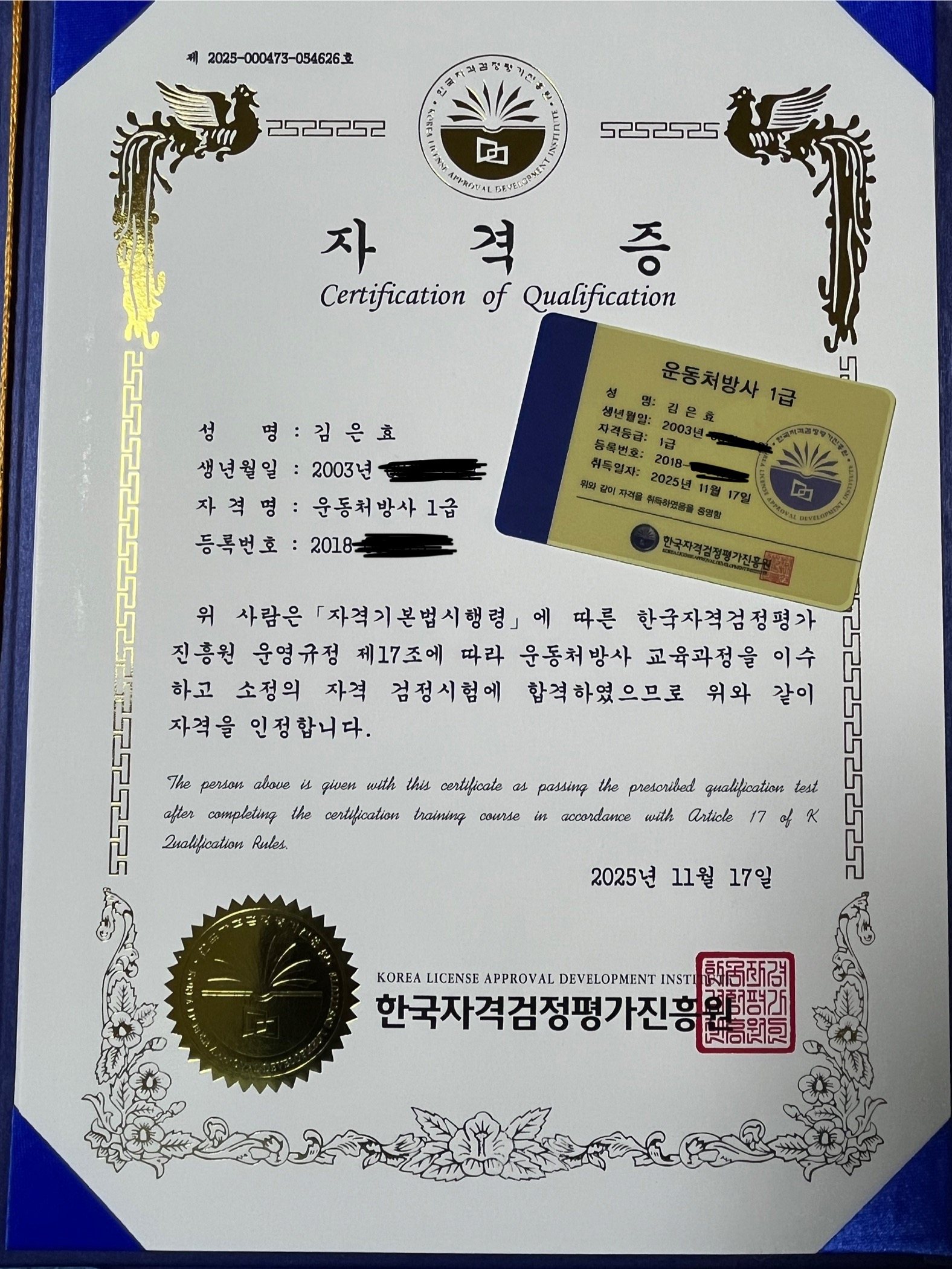 와아~ 체형관리사 자격증이 우편으로 왔습니다. 우편물을 본 순간 정말 가슴이 뿌듯하고 기뻤습니다. 조심스럽게 우편물을 열고 자격증을 봤습니다. 성취감이 나의 가슴을 벅차게 했습니다. 강의를 통해서 많은 것을 배웠습니다. 이덕환교수님의 강의는 귀에 쏙쏙 들어왔습니다. 목소리도 차분하고, 친근해서 강의 듣기가 좋았습니다. 명강의입니다. 지면을 통해 감사를 드립니다. 오늘은 다른 자격증에도 도전하고 싶은 마음이 생겼습니다. 도전하겠습니다. 감사합니다.