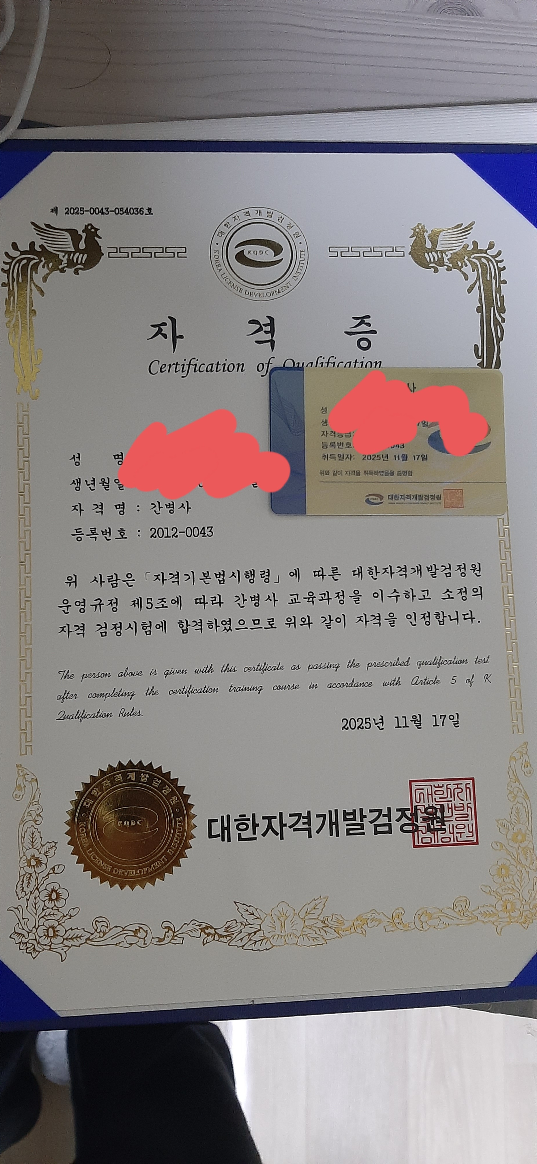 이이들이 다커서 무엇을 해볼까 하다가 우연히 한국자격검정평가원 알게되었습니다 부모님이 계셔서 나중에 도움이 되질않을까해서 간병사 공부을 시작해서 강의와 함께 필기하면 복습하면서 합격을 했습니다.