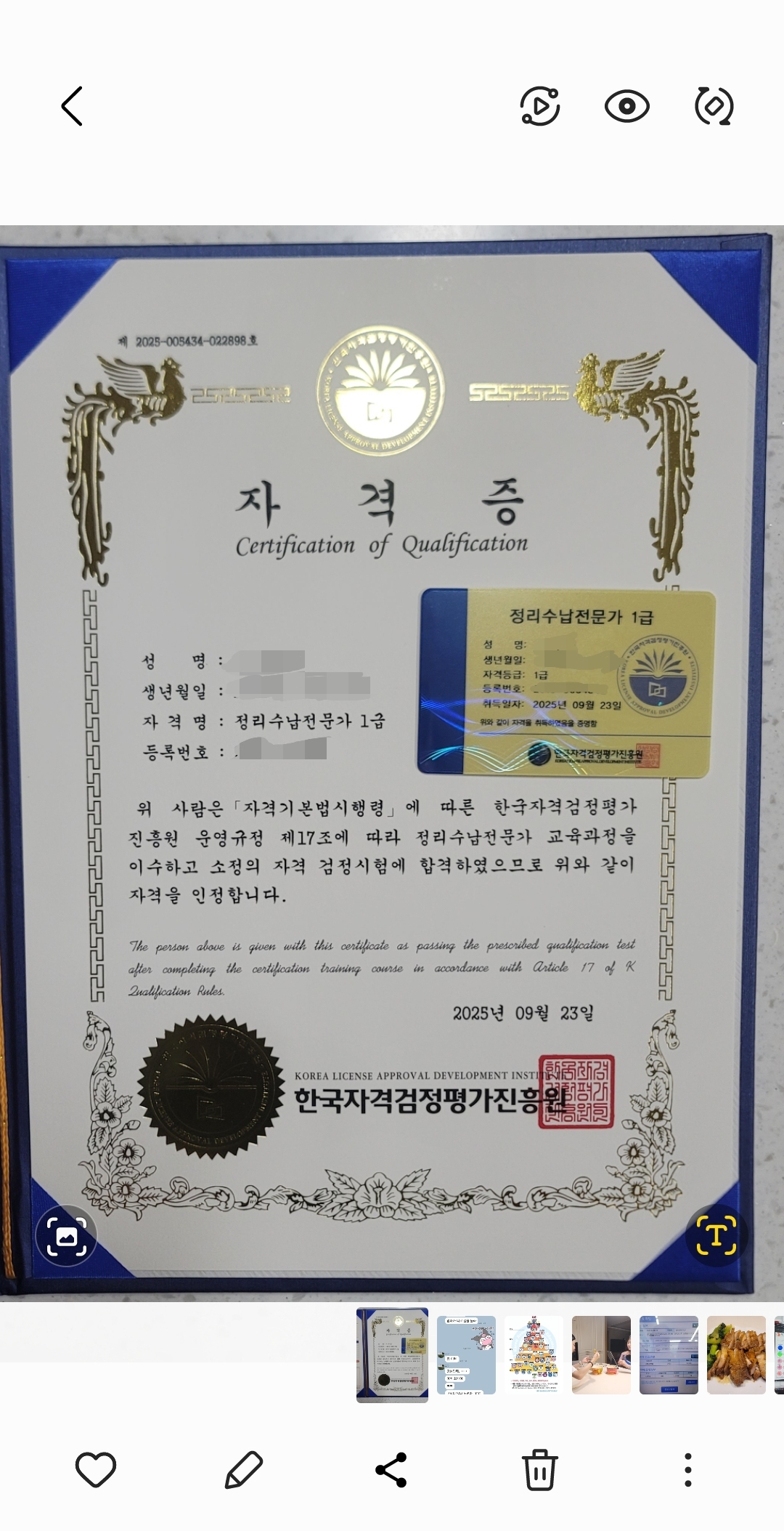 살림에 진심인 주부인데 가사에도 도움될 것 같고 아이들 키우고 어떤 일을 하든 도움이 될 것 같아 취득했어요~ 다른 자격증도 도전!