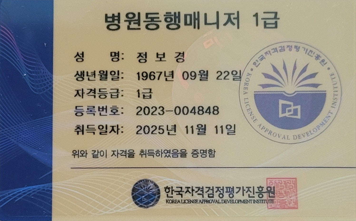 1. 드디어 생활지원사 합격! 짧은 기간이었지만 배운 만큼 결과로 이어져 기쁩니다. 앞으로 따뜻한 마음으로 어르신들 잘 모시겠습니다.