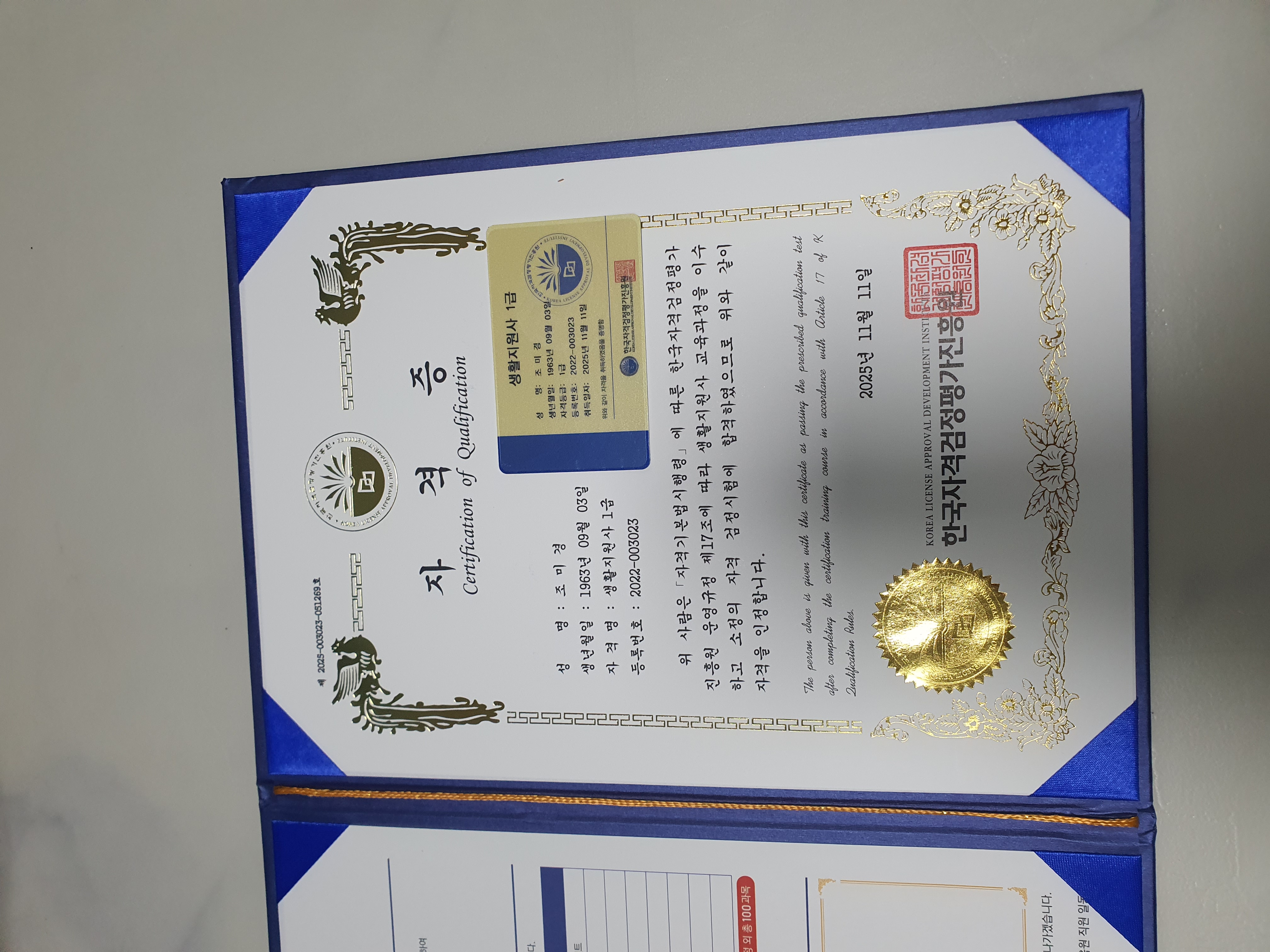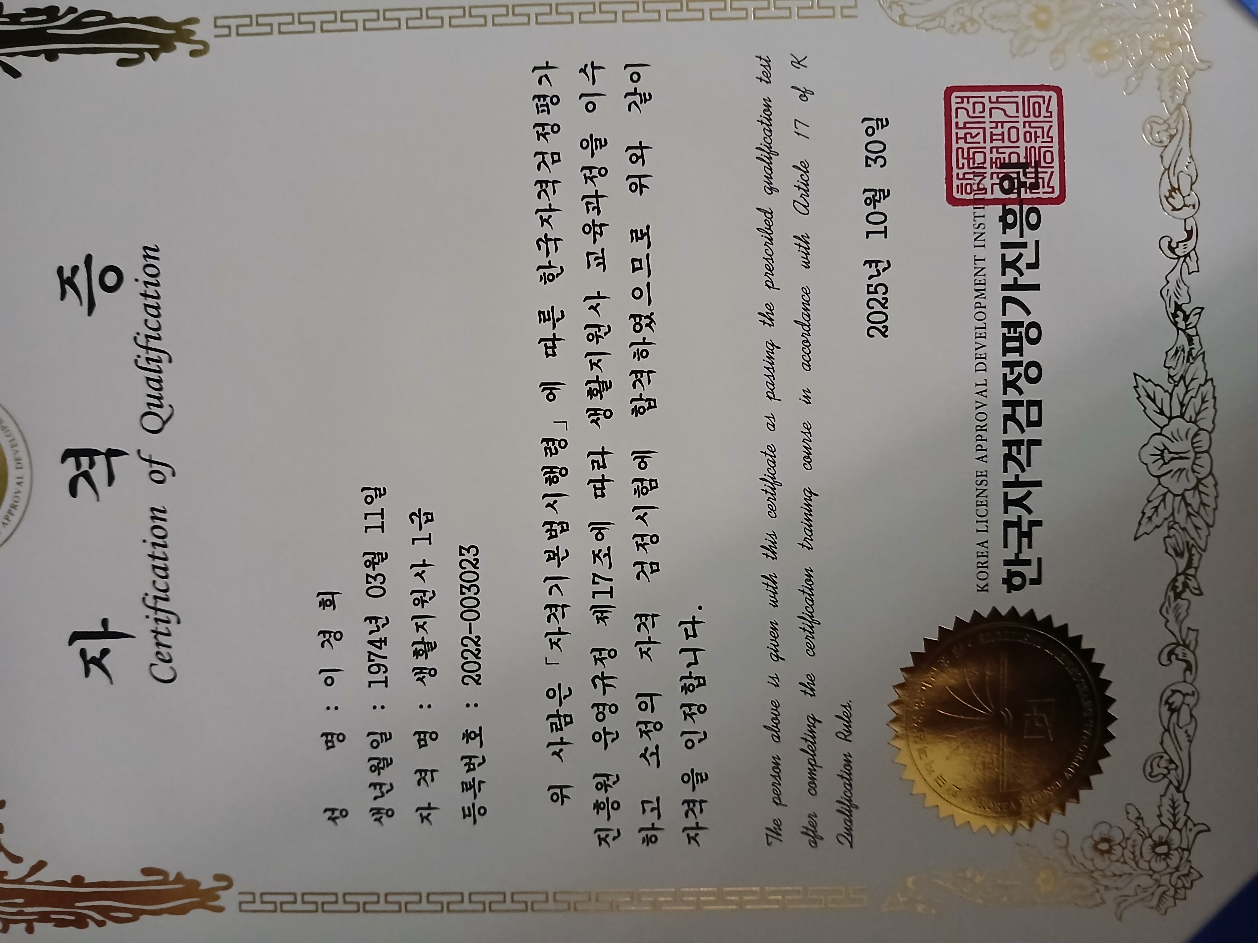 미용일 그만두고 새로운 일에 도전해볼까 라는 생각으로 생활지원사 자격취득을 했습니다 현장에서 꼭 사용할수 있는날이 오긴 기대합니다
