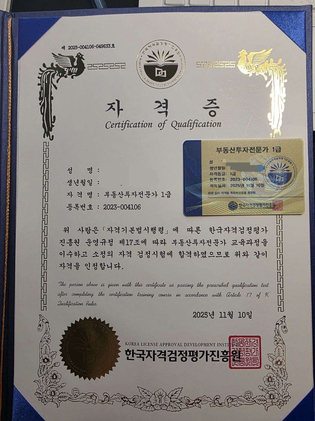 부동산에 관심이 많다 보니 자격증 욕심이 생겨 관련 교육 프로그램을 찾아보다가 한국자격검정평가진흥원의 무료교육 과정을 알게 되었어요. 프로그램 종류가 다양해서 선택의 폭이 넓었고, 강의 내용도 실무에 도움이 될 만큼 알차더라구요. 교수님 설명이 이해하기 쉽게 잘 정리되어 있어서 부담 없이 공부할 수 있었고 덕분에 무난히 합격했습니다 부동산 분야에 관심 있으신 분들이라면 한 번쯤 도전해보셔도 좋을 것 같아요.