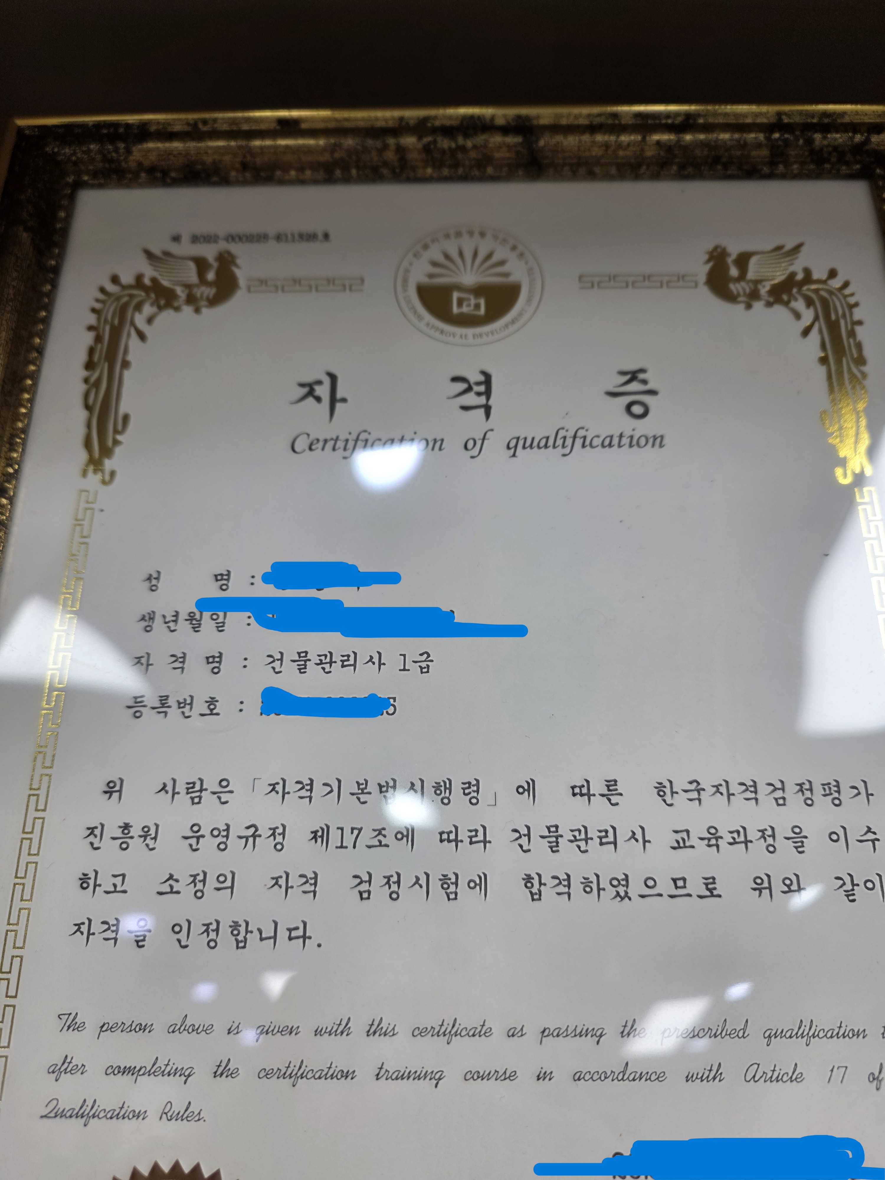건물관리사 자격증을 한국자격검정평가진흥원 강의를 듣고 취득을하였습니다. 매우 유익한 강의이고 교수님 설명도 귀에 쏙쏙들어와서 그런지 자격증 취득을 무난하게 취득하였네요. 다른 학우 여러분들도 저처럼 건물관리사 자격증을 취득해서 실무에 써보는것도 매우 괜찮습니다. 교수님 강의짱입니다.