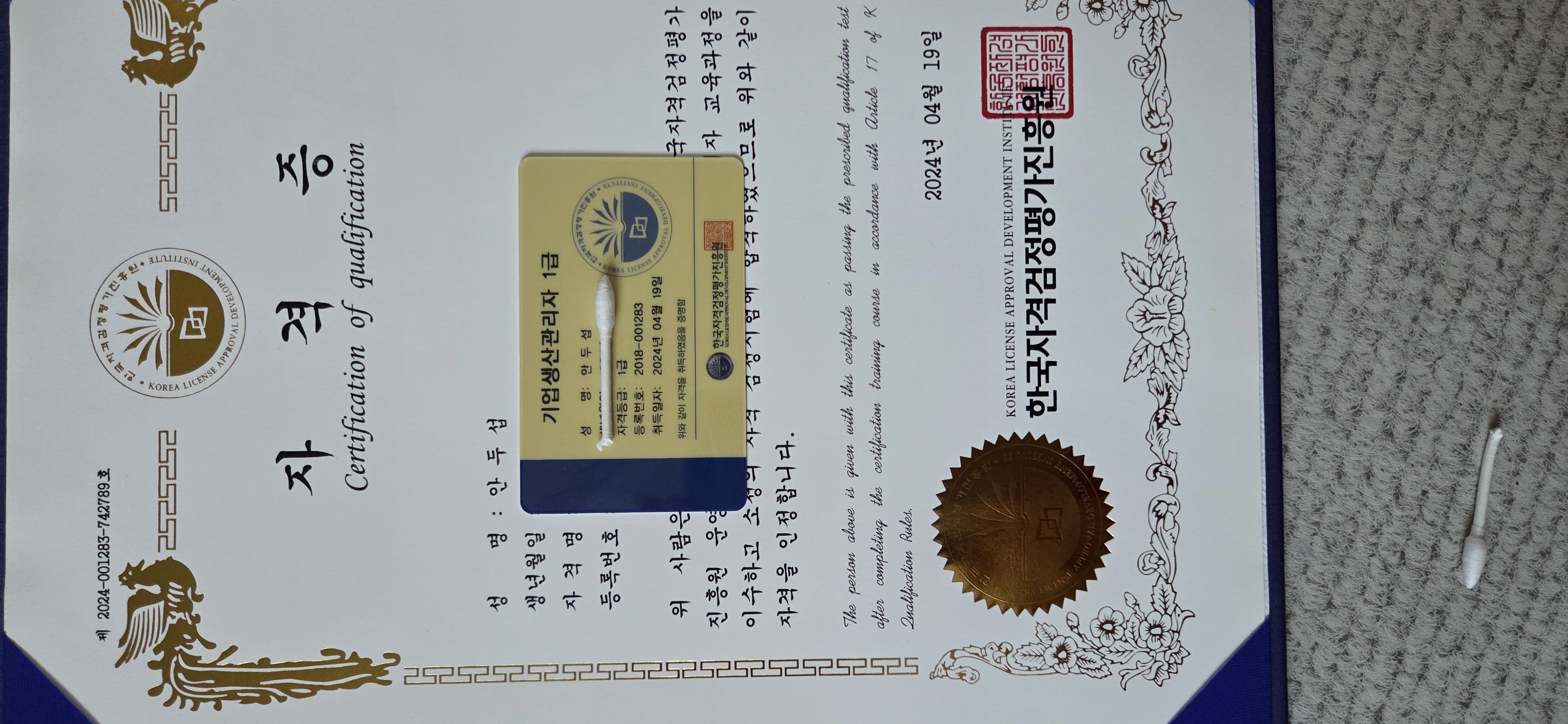 회시를 다니면서 생산관리에 대한 이론및 실제 적용사례관련 배움이 필요하였는데 한국자격감정평가진흥원을 알게되어서 공부하게되었습니다. 강사님설명 및 자료가 잘되어 있어서 자격증을 취득하는데 많은 도움이 되었습니다