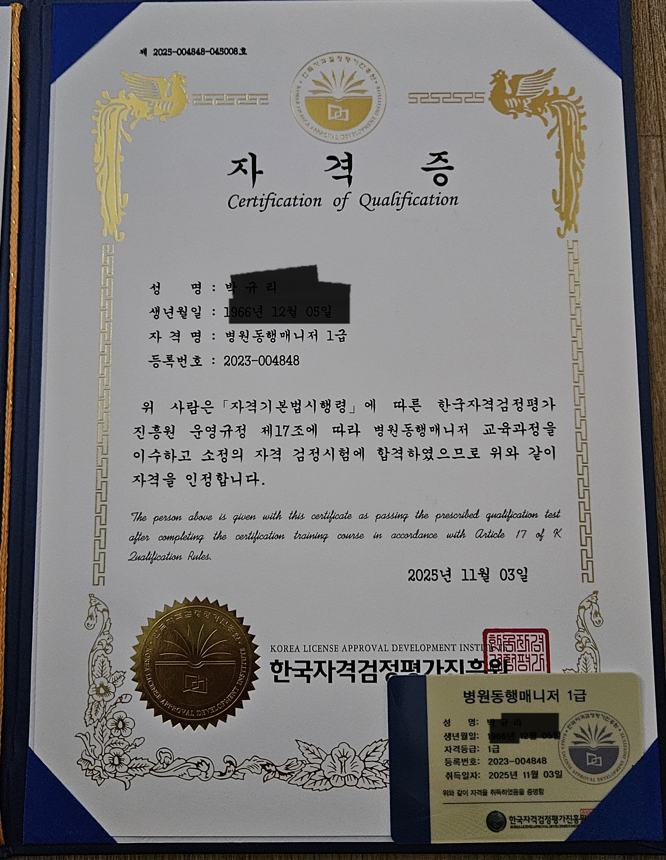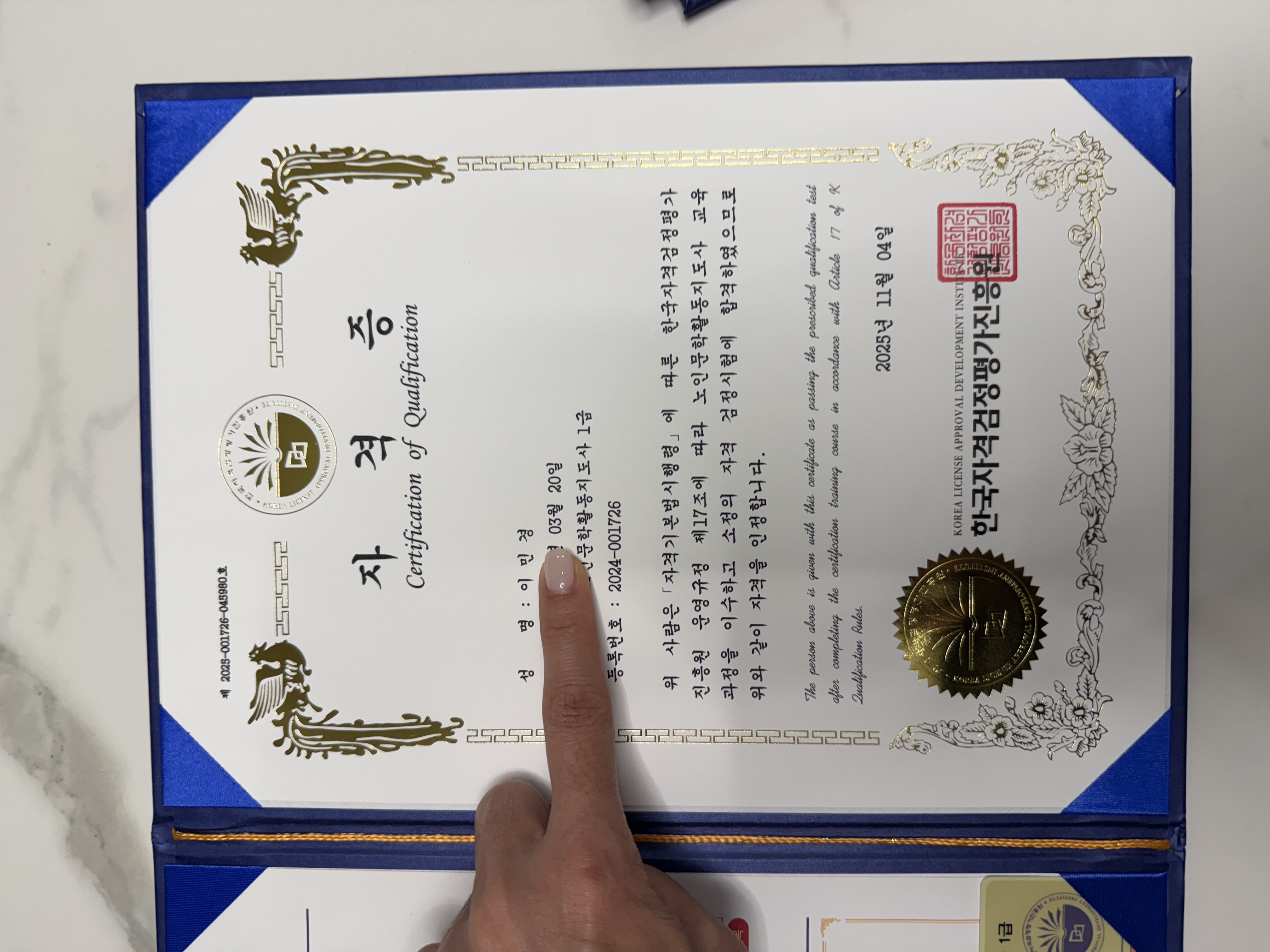요즘에 시니어에 관련된 자격증을 열심히 고민하고 있었는데, 전공이 국문학 쪽이라서 수업을 듣고 땄습니다 어렵지 않고 편안하고 쉽게 알려 주셔서 유익하게 딸 수 있었습니다. 감사합니다.