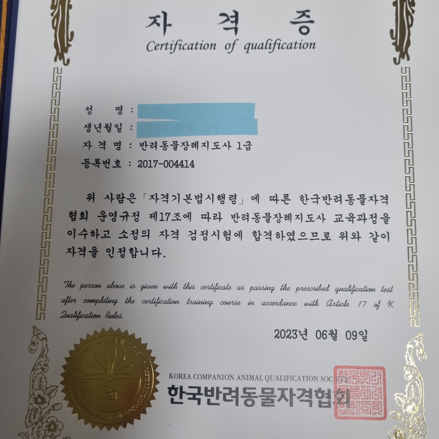자격증 땄습니다